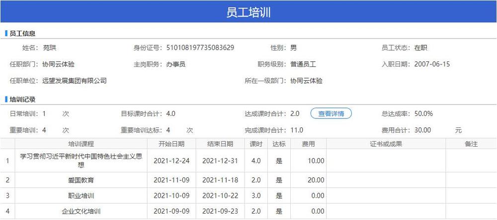 培訓記錄與人事檔案保持一致,幫您全方位評估員工