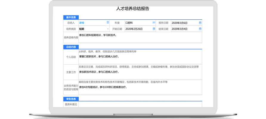 人才培養(yǎng)管理有助于提升您的醫(yī)院醫(yī)務(wù)人員技術(shù)水平。規(guī)范醫(yī)務(wù)人員執(zhí)行在職教育要求,按標(biāo)準(zhǔn)進(jìn)行考試、培訓(xùn)、晉升,您的醫(yī)院管理者還可隨時(shí)關(guān)注人才培養(yǎng)情況,核實(shí)人才培養(yǎng)成果。
