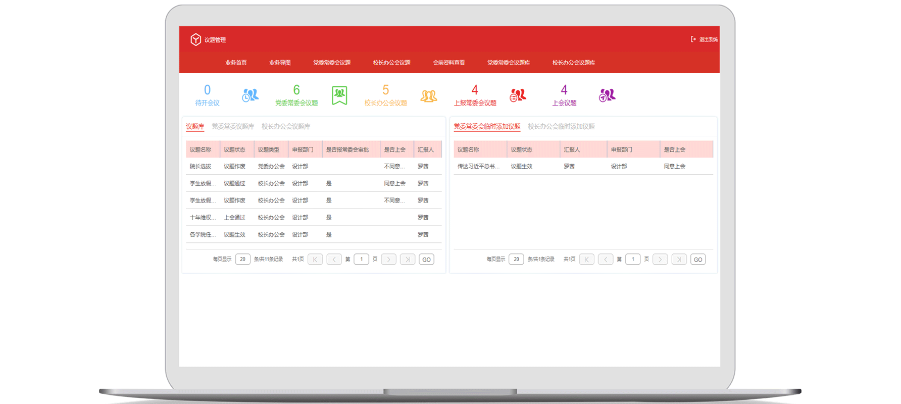 高校會議多,不同議題分類存檔,議題庫井然有序,尋找或者呈送議題時快捷迅速,或者重新申請議題,節約時間。
