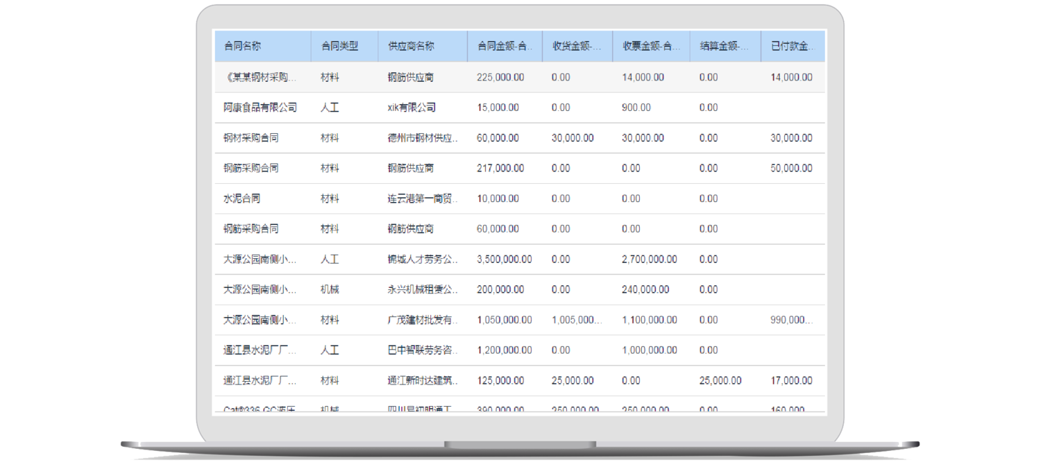 成本合同概況臺賬中系統地記錄了各成本合同的簽訂情況、付款情況、收票情況、收貨情況,方便統一查詢調用