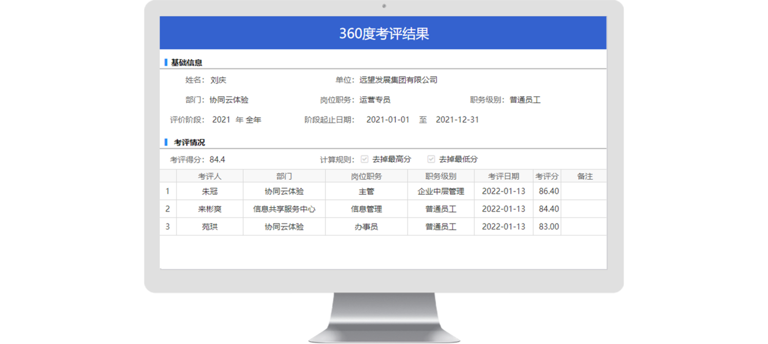 根據(jù)考核內(nèi)容對其他開考核人員評(píng)分,多人背對背互評(píng),計(jì)算得分時(shí)可去掉最高分和最低分,避免惡意評(píng)分。